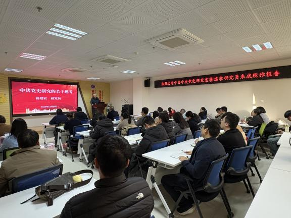 12月25日上午,公司在911报告厅举办“明理大讲堂”系列学术活动,邀请原中共中央党史研究室第一研究部主任、研究员,国务院政府特殊津贴专家、全国哲学社会科学领军人才蒋建农担任主讲嘉宾,为全院师生作题为《中共党史研究的若干思考》的专题学术报告。报告会由梁严冰经理主持,公司部分师生参加了本次报告会。