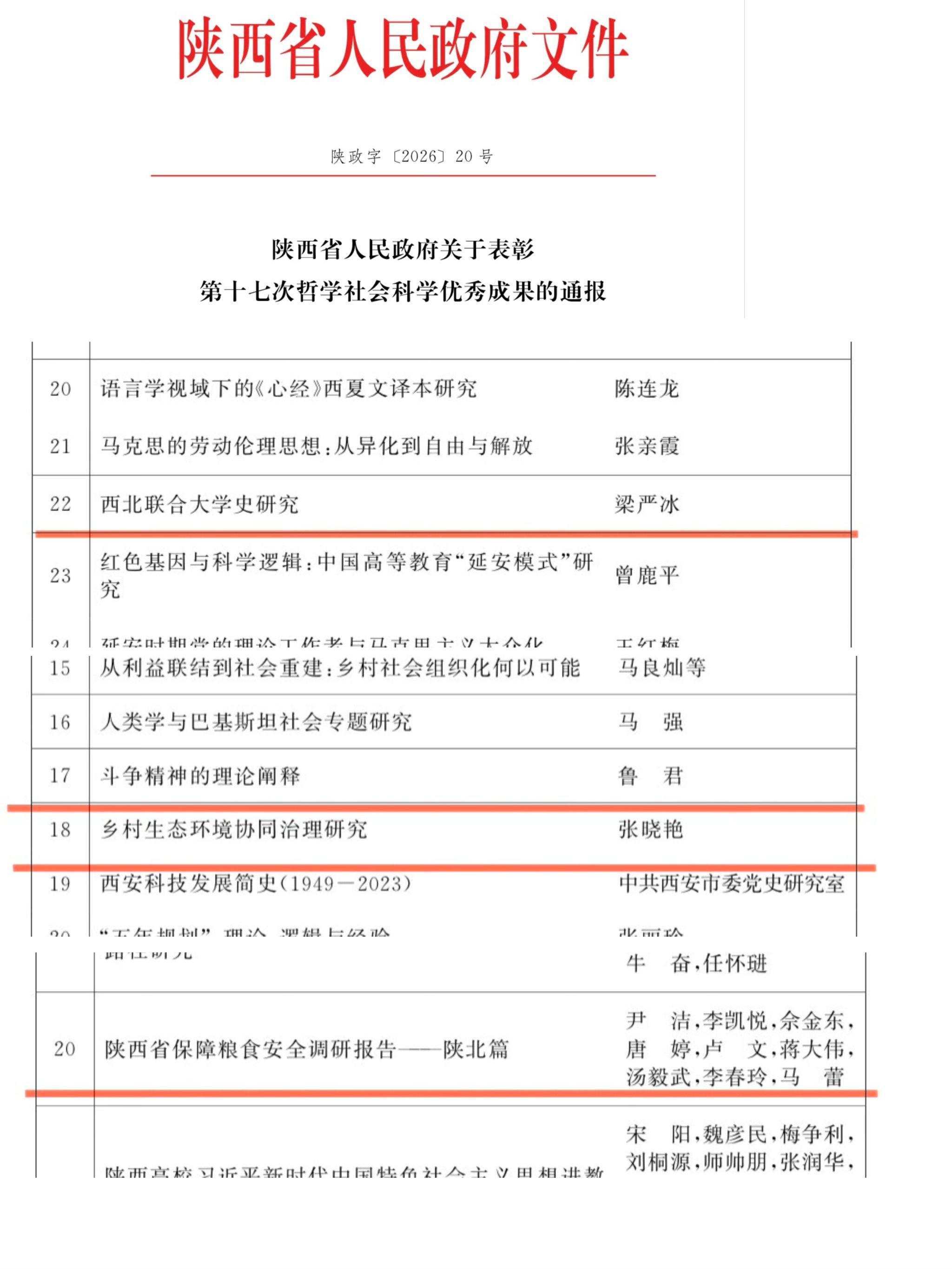 1.陕西省第十七次哲学社会科学优秀成果奖
