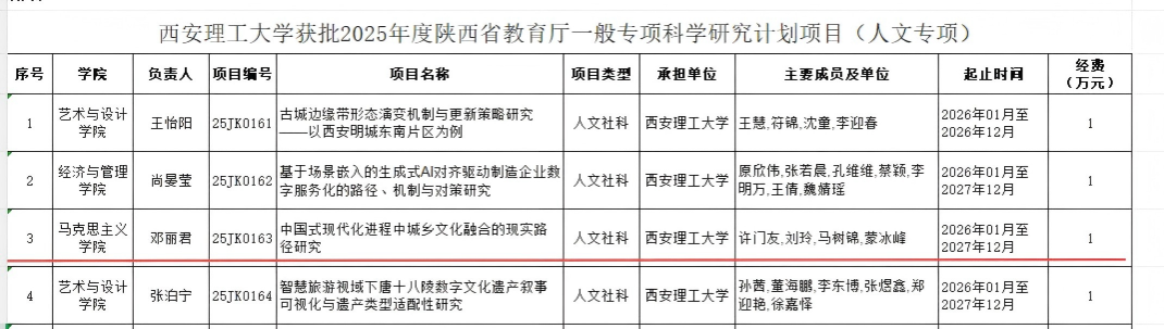 获批2025年度陕西省教育厅科学研究计划项目-人文专项