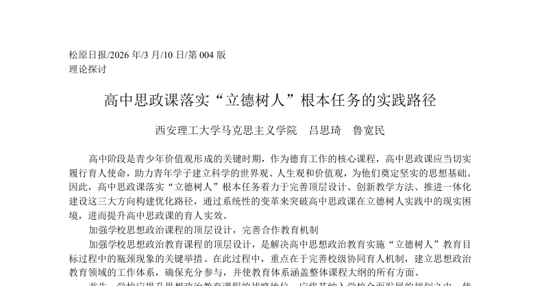 3.高中思政课落实“立德树人”根本任务的实践路径