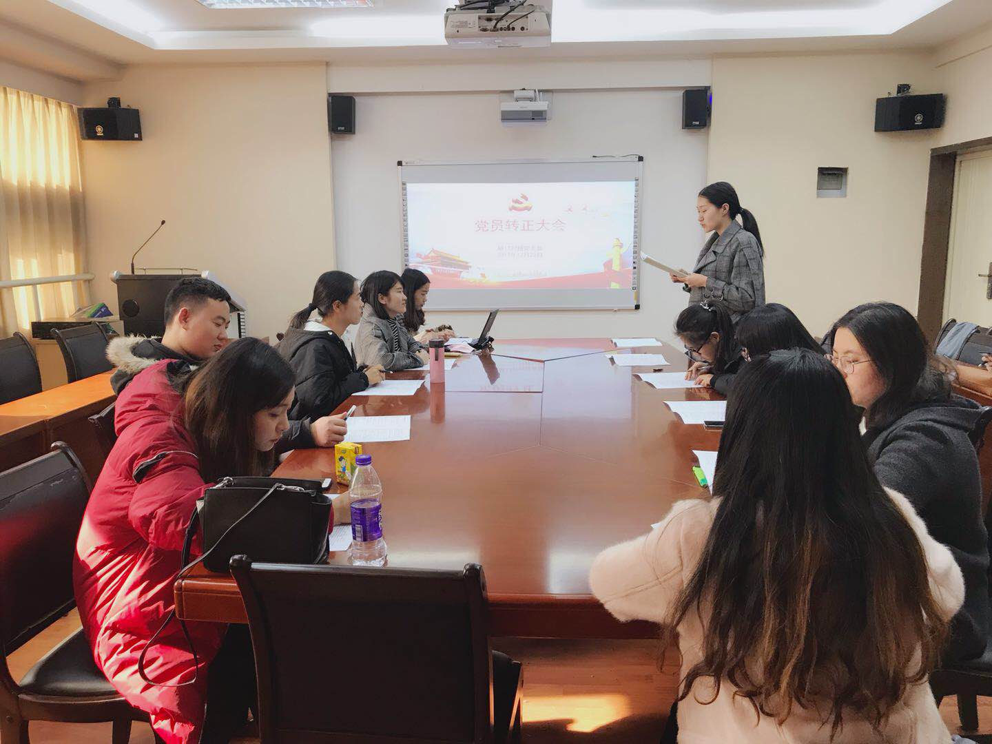 会议伊始,支部书记刘燕就此次会议作了相关安排,指出本次会议分为两个部分,一是讨论关于孙莹同志申请转为正式党员的问题;二是十九大精神知识竞赛答题活动。