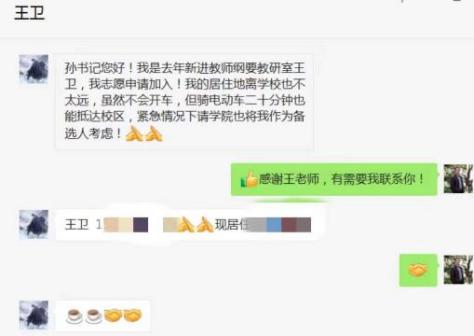 因疫情防控需要,公司组织成立校外教师应急小组,保证校内员工遇到突发情况时的应急处置,公司教师纷纷响应号召积极报名。班子成员率先参与,短短时间内,数十名教师加入到应急小组中。学科带头人史向军老师主动请缨到战“疫”前线,刚入职的王卫老师热情的说到,“在组织需要的时候立刻到位”。张晓艳、闫昕、鲁君、郝丹梅、乔夏阳等众多老师收到通知后,毫不犹豫提出申请。