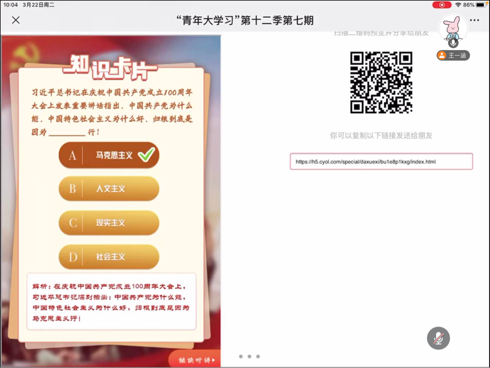 3月22日,伟德国际1949研2036班团支部围绕青年大学习第十二季第七期“归根到底是因为马克思主义行”这一主题,开展线上研讨会。本次研讨会由团支部书记王一涵主持,支部成员积极参加本次学习活动并深入交流学习感悟。