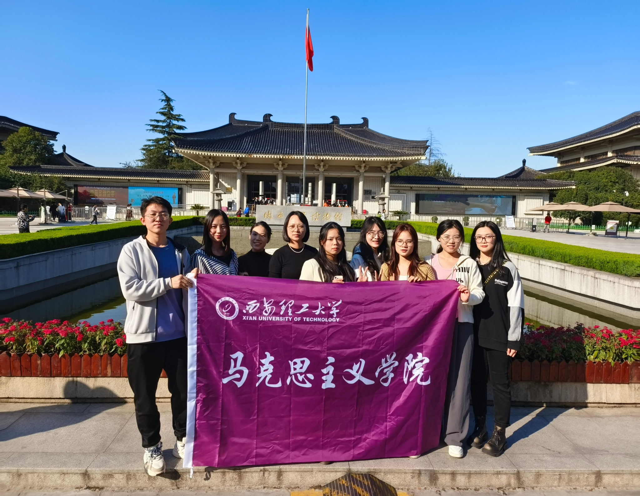 陕西作为十三朝古都,遍布在全省的23453处古遗迹是人类发展历史不可湮灭的文明印记,14367处古墓葬是中华文明不可割断的文明根脉,6702处矗立在三秦大地上的古建筑是中华文明不可颓堕的文明标识,1068处石窟寺、石刻类文物是不可剥蚀的文明宝库,3213处近现代重要史迹特别是革命文物是红色文化的鲜明印记。陕西历史博物馆作为展示陕西发展历史和对外交流的重要窗口,在传承中华文明方面发挥了独特作用。为了加深对陕西乃至中华五千年悠久历史的了解,10月20日,伟德国际1949研究生会赴陕西历史博物馆参观研学。