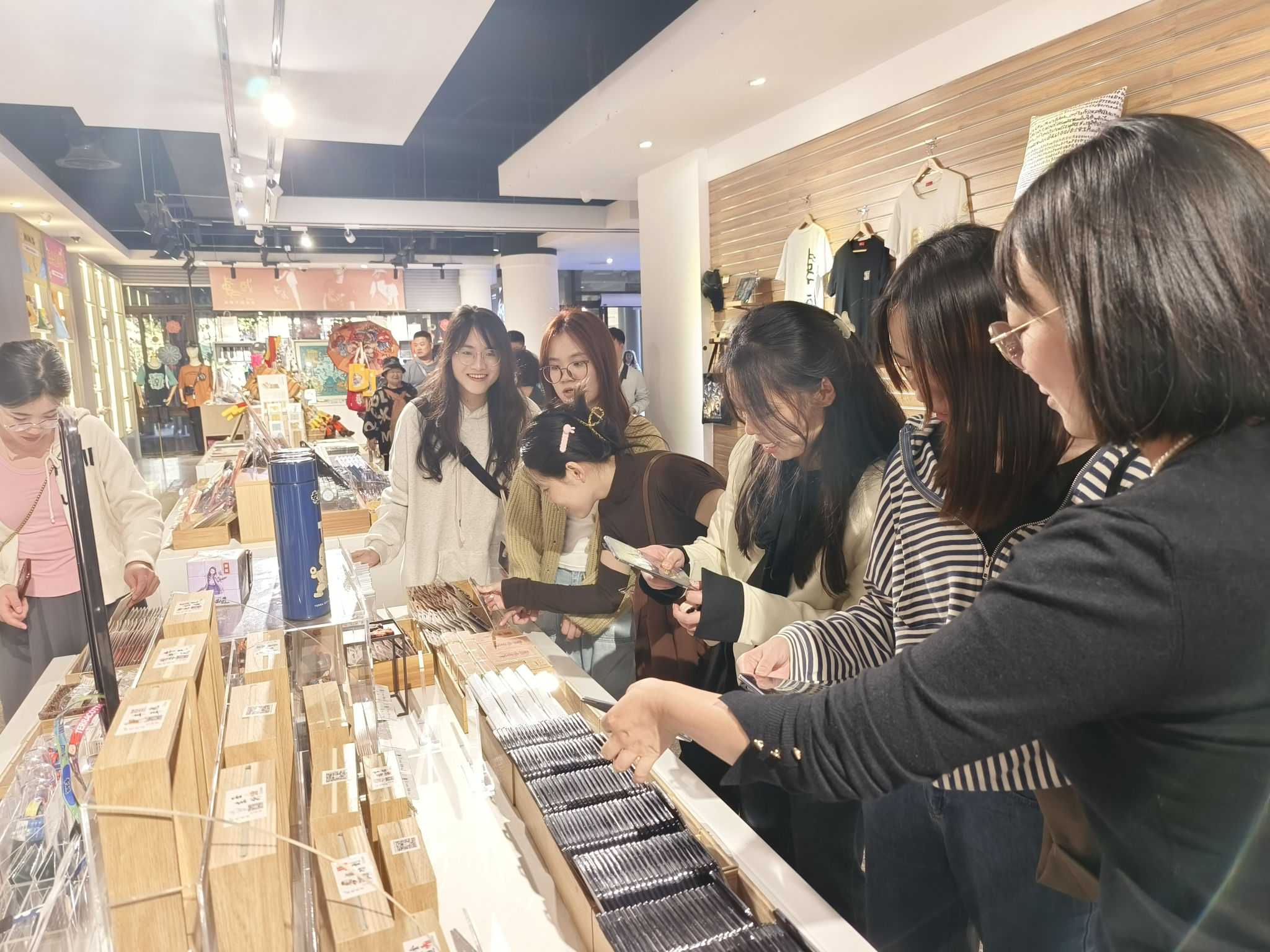 参观之余,员工们对博物馆文创商品表现出极大的兴趣,纷纷购买自己心仪的书签、印章、折扇等留存或赠送友人,博物馆文创产品让原本庄严肃穆的文物“走出了”博物馆,丰富了人们的日常文化生活,也助推了文化的传承与创新,成为文化与经济紧密结合的重要推动力量。