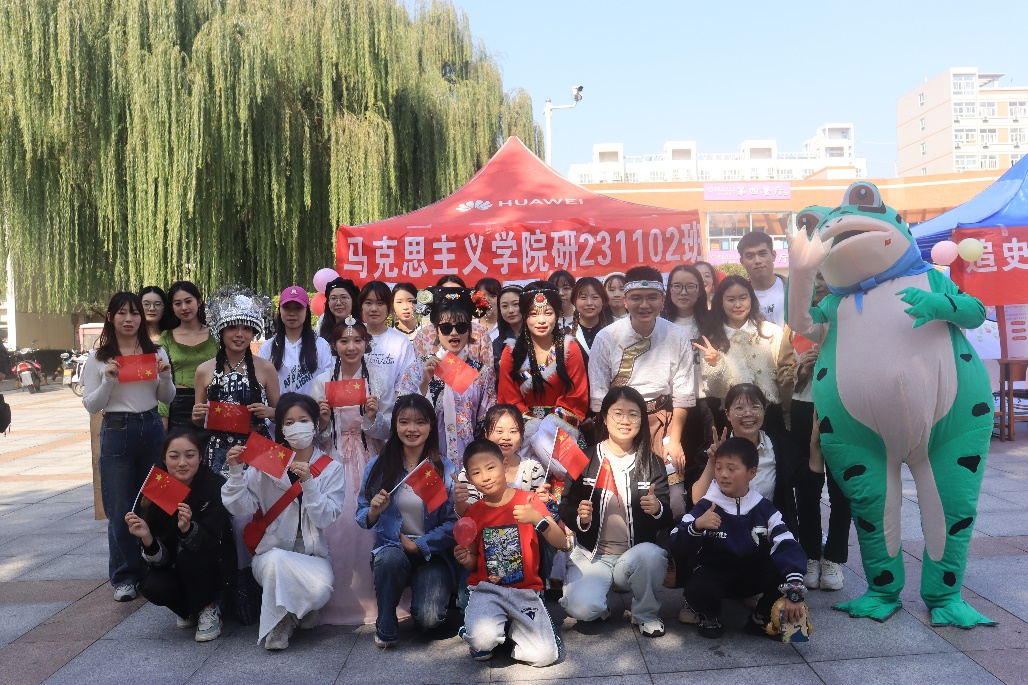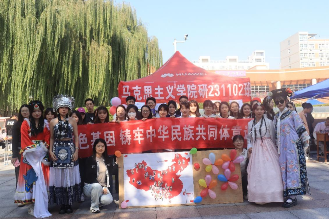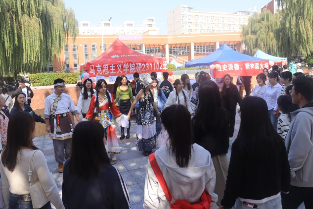 10月28日,团支部在·公司三餐厅广场开展面向全校师生的“民族团结一家亲,同心共筑中国梦”主题活动。举办了各民族人像中国版图粘贴、少数民族特色游戏体验、少数民族服饰穿戴体验等丰富多彩的活动。中午时分,全体同学共唱《爱我中华》歌曲,同学们载歌载舞,吸引了过往师生们驻足观看,拍照打卡,活动赢得了在场师生的阵阵掌声与喝彩。