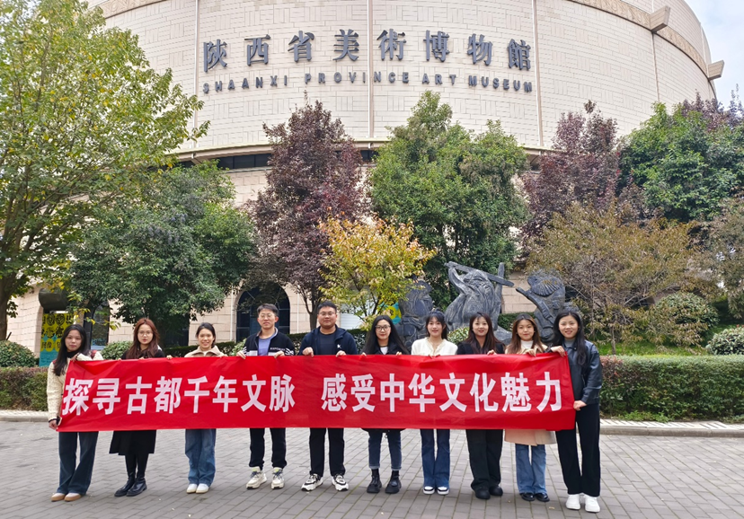 陕西省美术博物馆位于陕西省碑林区,是我国西部地区规模最大的一座美术博物馆。馆内收藏了中国画、油画、版画、雕塑、水彩水粉、工艺、书法、篆刻、年画、拓片、民间艺术品等各类美术藏品,充分展现了我国西部地区的历史文化、红色文化、黄河文化、丝路文化、黄土文化及秦岭文化,彰显了伟大建党精神及延安精神。为传承红色文化,践行习近平总书记三次来陕考察发表重要讲话精神,11月10日,伟德国际1949研究生会来到博物馆漫游之旅第三站——陕西省美术博物馆参观研学,重温红色记忆,感知艺术魅力,在老一辈的优秀艺术创作中汲取文化的智慧与力量,增强文化自信。