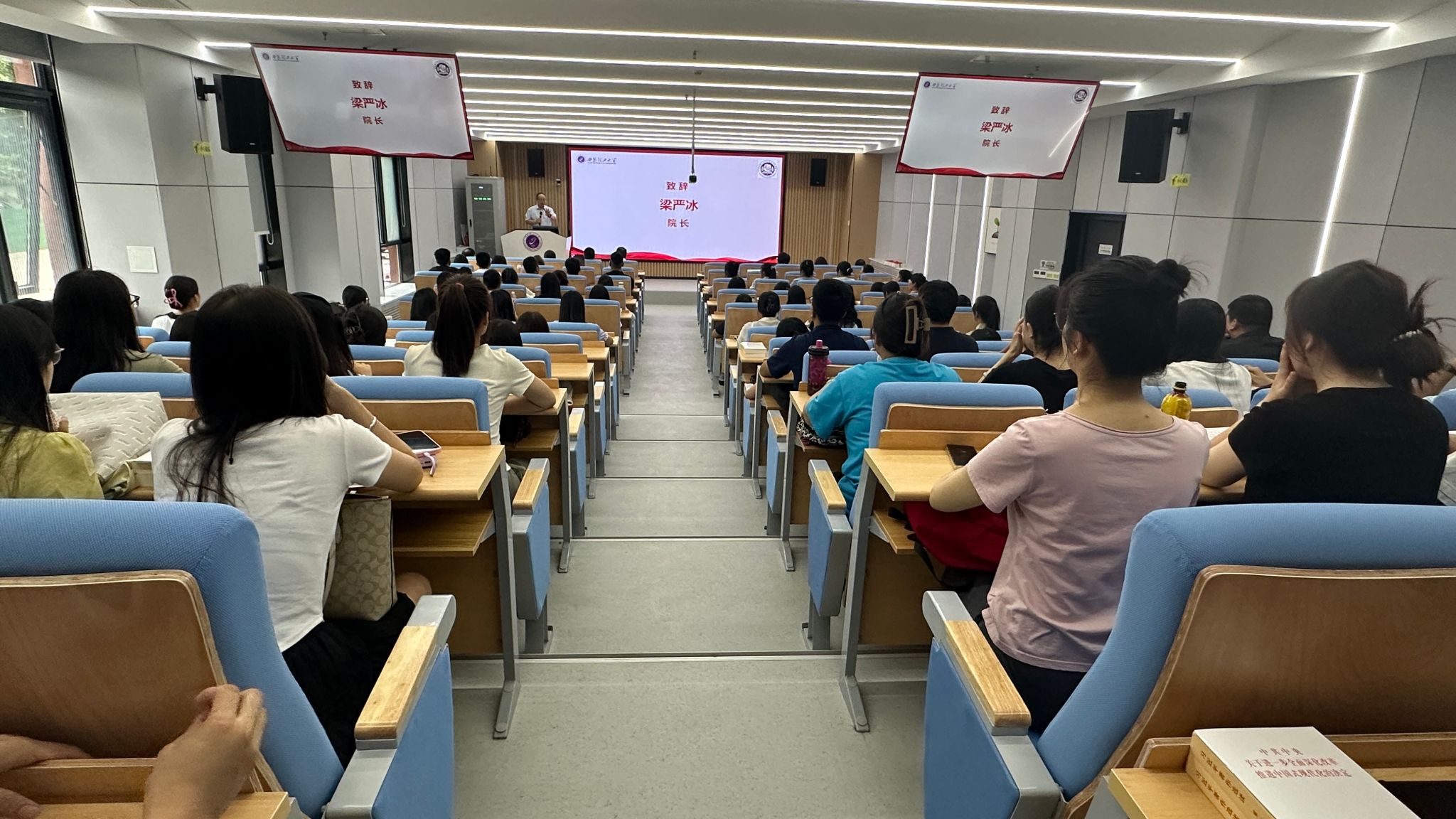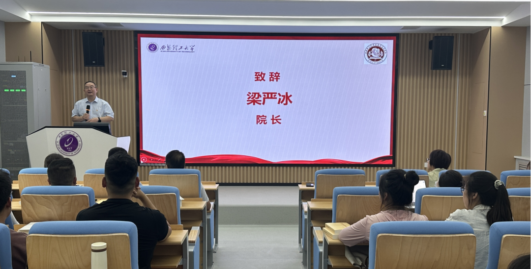 梁严冰代表公司致辞。他对2024级新生表示热烈欢迎,详细介绍了公司历史沿革、团队建设、教学等情况,并对2024级新生提出三点希望:一是希望大家坚定信念,潜心钻研,以奋斗姿态擦亮青春底色;二是希望大家敢于创新,严于律己,勇敢迎接学术困难和挑战;三是希望大家树立理想,勇攀高峰,肩负起时代赋予的责任和使命。
