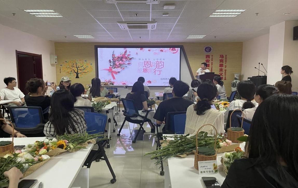 金秋送爽,丹桂飘香,在第40个教师节来临之际,9月6日下午,马克思主义公司党委组织师生欢聚综南楼911报告厅,以“师恩花韵 感恩同行”为主题,举办了一场别开生面的插花活动。公司研究生分会承办本次活动,公司部分教师、硕士研究生参加本次活动,活动由任卓欣同学主持。
