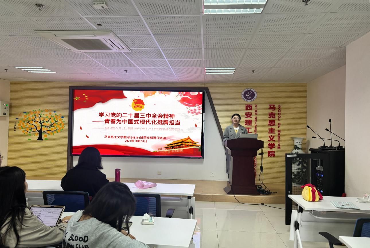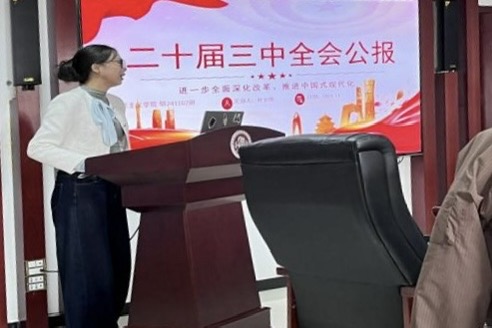 11月5日,团支部在综南楼909会议室开展理论学习。团支书杜宇琪播放党的二十届三中全会重要片段和民族团结主题相关宣传视频。随后,为支部成员解读了党的二十届三中全会精神和习近平总书记关于加强和改进民族工作重要思想的相关内容。最后,同学们结合学习内容,分享了自己心得体会。本次理论学习增进了同学们对铸牢中华民族共同体意识的认识。