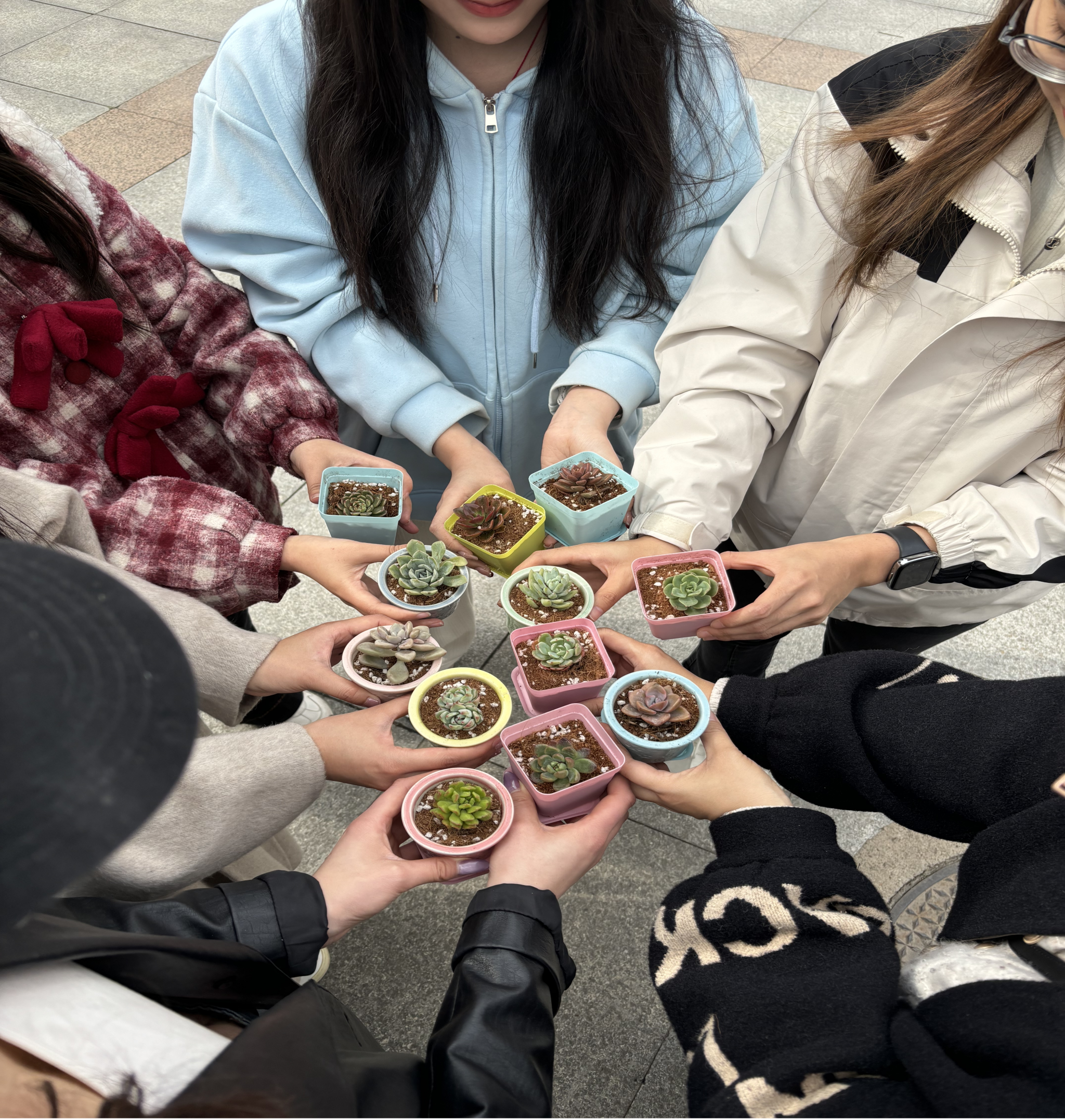 同日,研231102班团支部在曲江校区三餐广场举办了一场别开生面的“指尖绿意·多肉微森林”主题种植活动,旨在引导青年树立爱护环境和保护树木的意识,营造植绿、爱绿、护绿的良好氛围。