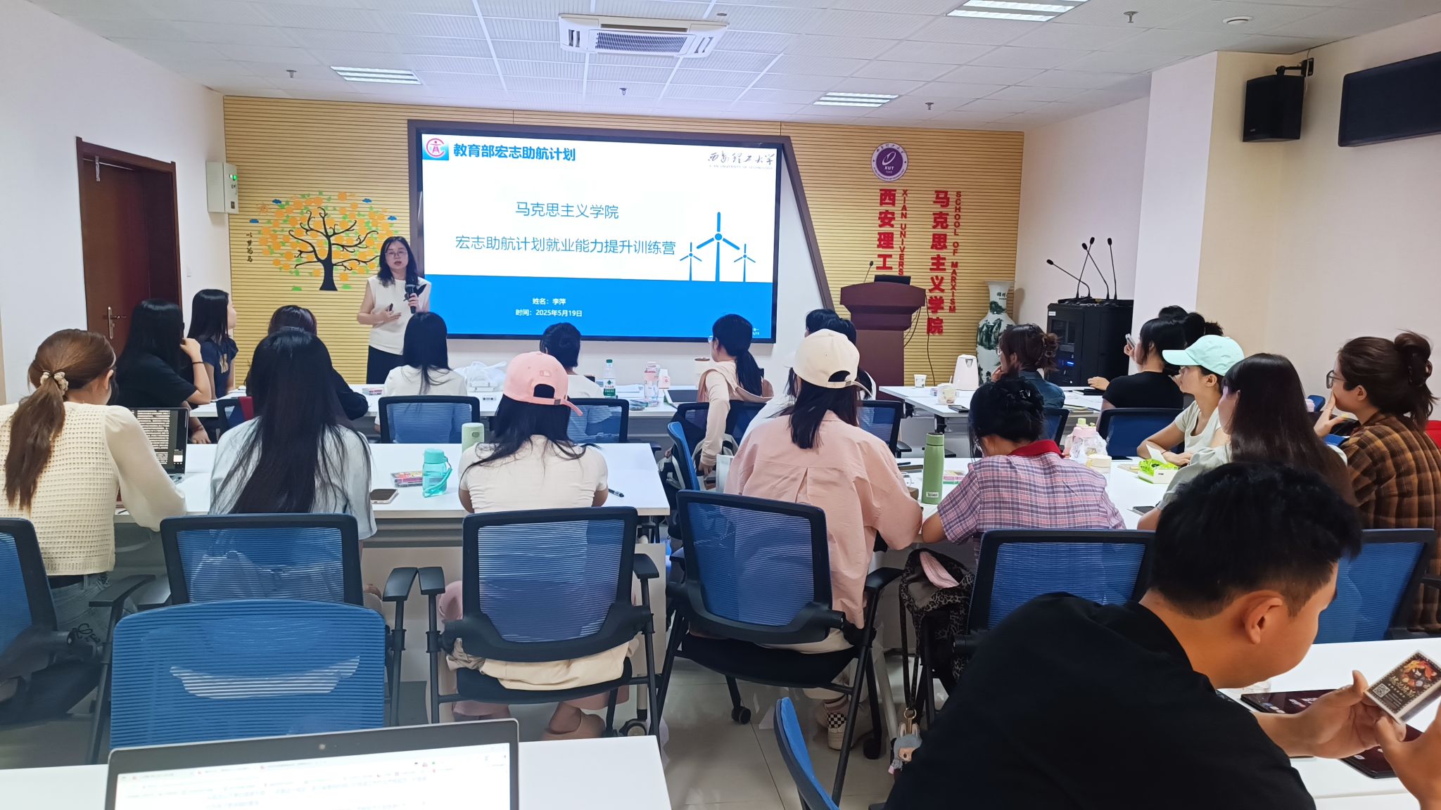 为深入贯彻落实习近平总书记关于高校毕业生就业工作的重要指示精神,帮助2026届毕业生尽早明确职业方向、提升就业竞争力,公司于5月19日在综南楼911报告厅举办2026届毕业生宏志助航计划就业能力提升训练营。本次活动邀请到公司指南针生涯发展工作室成员李萍老师主讲,辅导员王梦老师和2026届毕业生参与其中。