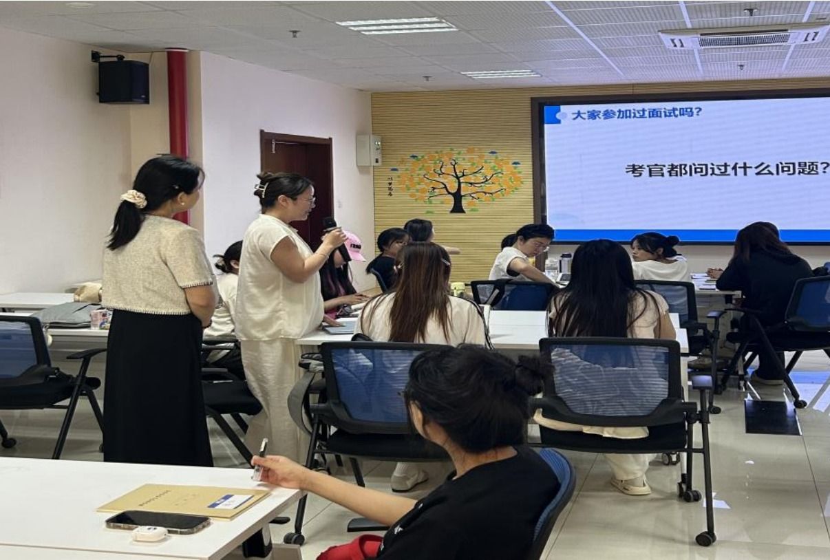 随后,在面试流程讲解环节,王佳老师将个体面试细致划分为面前、面中、面后三个关键阶段,讲授了提前到场、冷静抽号等待、自信进行自我介绍及互动,以及礼貌退场等内容,让员工们对面试全流程有了清晰认知。此外,王佳老师还分享了自我介绍的实用结构,从掌控时间、设计开头,到明确核心要点、合理安排经历发挥及牢记结束语,为员工设计了自我介绍的“万能模板”。谈及面试常见问题及答题思路,王佳老师指出,专业知识、团队协作能力、组织协调能力、学习能力、抗压能力、沟通表达能力、复杂事件处理能力等是面试官关注的焦点,并提醒同学们结合实际岗位有针对性地准备。对于一些常见的面试高频问题,她指出,要深度剖析问题,理清答题思路,同学们纷纷表示收获颇丰。