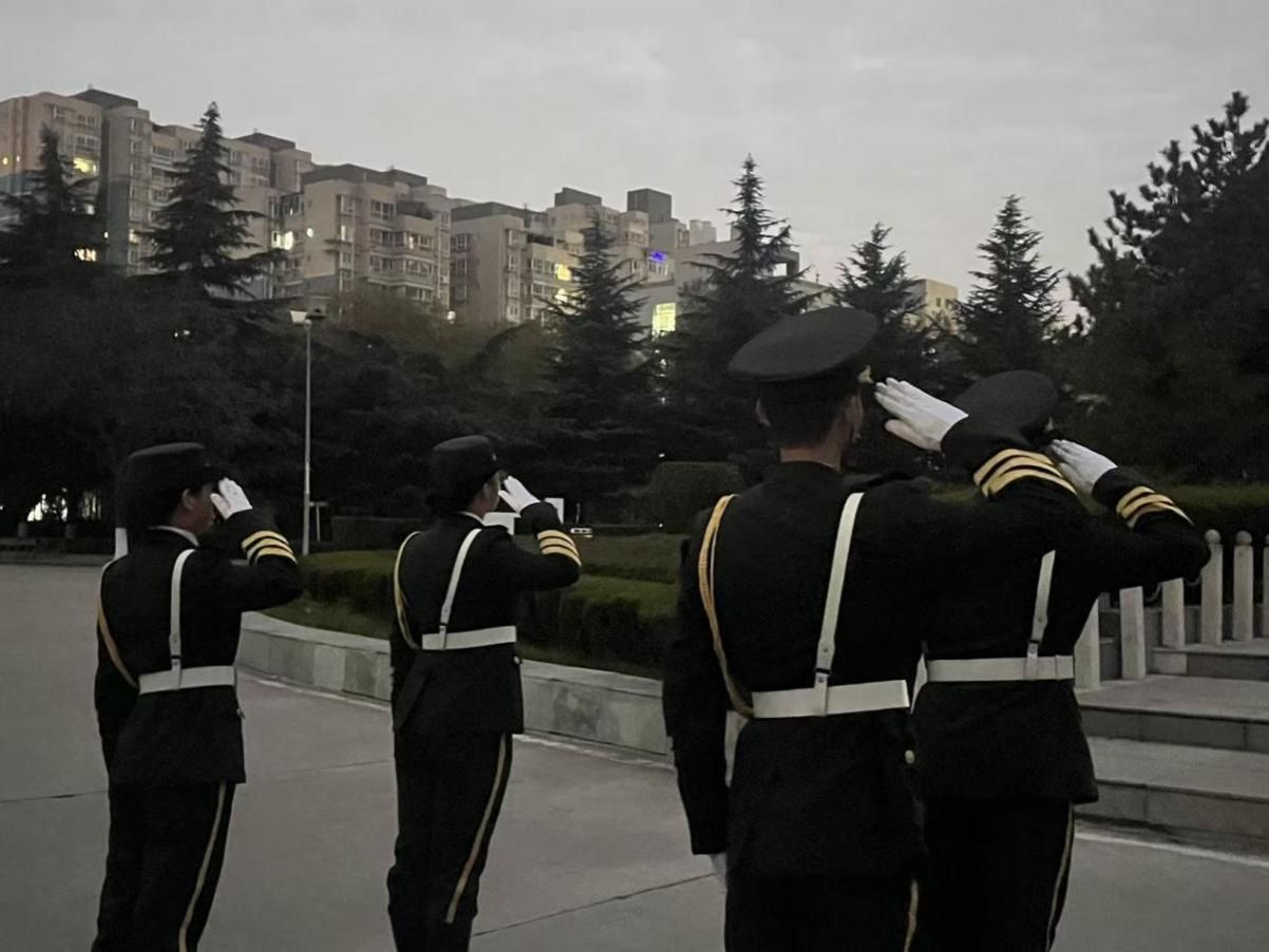 晨曦微露之际,7时整,升旗仪式如期启幕。国旗护卫队步伐规整、气势昂扬,护送着鲜红的五星红旗稳步迈向升旗台。全体师生肃立台前,面向国旗行注目礼,伴随着雄壮的国歌奏响,目光追随着冉冉升起的五星红旗,鲜红旗帜于晨风中舒展飘扬,满含赤诚的爱国之情在每个人心中激荡。