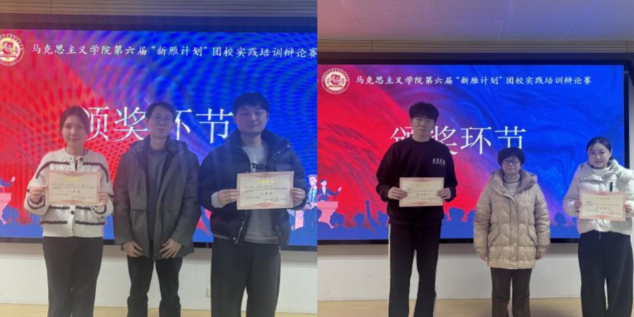 经过评委团的公正评审,各奖项归属尘埃落定。在热烈的掌声中,两位老师为获奖队伍及个人颁发了荣誉证书。团体奖项表彰了辩手们默契的配合与深厚的理论积淀,而“最佳辩手”的殊荣则是对个人敏捷才思与卓越临场表现的肯定。这份荣誉不仅是对同学们辛勤付出的回报,更是对大家将理论运用于实践、在思辨中锤炼信仰的有力鞭策。