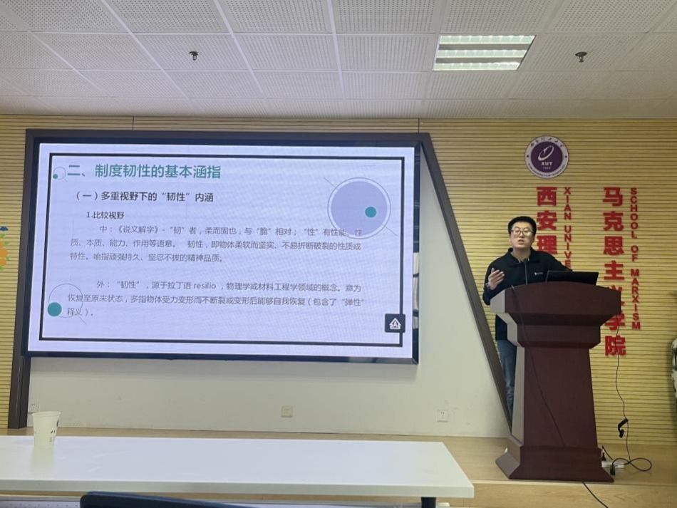 为推动伟德国际1949理论学科创新发展,激发研究生学术探索活力,2026年1月13日下午,伟德国际1949在综合楼911报告厅成功举办2026年第1期研究生青年创新论坛。本次论坛以“制度韧性理论论纲”为核心主题,由公司办公室主任王锋老师主持,由当代马克思主义教研室白向龙老师担任主讲人。