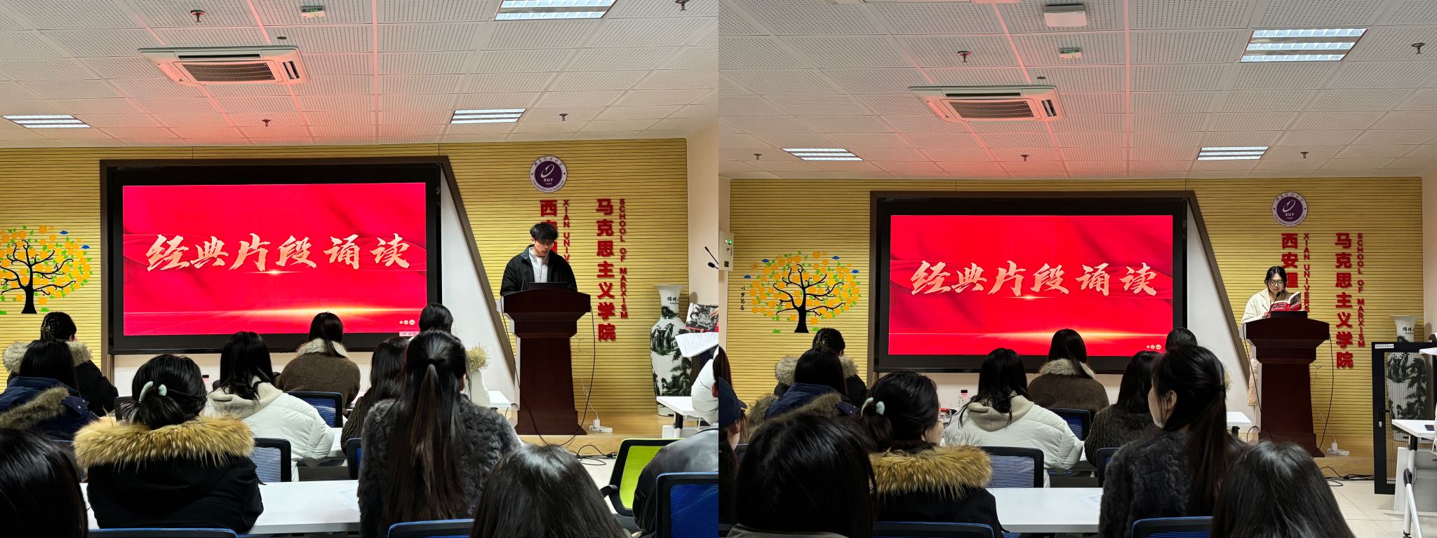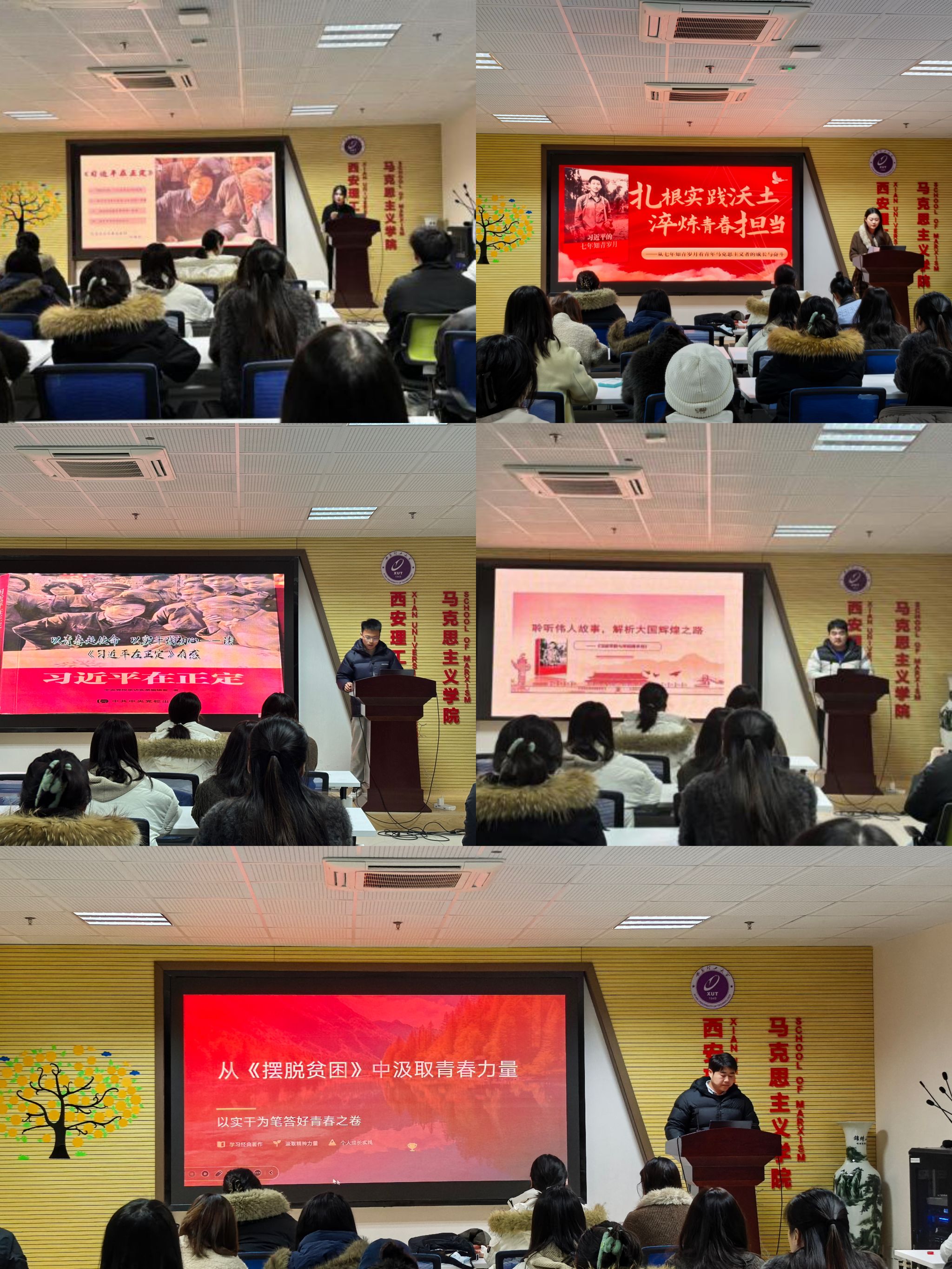 经典诵读传薪火,初心如磐向未来。活动第二项经典片段诵读环节中,思想政治教育专业杜宇琪、马克思主义基本原理专业高泽天两位同学依次进行个人诵读,他们精神饱满、声情并茂,通过读经典、谈感悟,带领同学们重温那段激情燃烧的岁月,汲取砥砺前行的真理力量。随后,全体成员齐读《习近平的七年知青岁月》经典片段,逐字逐句品读感悟,深刻领会著作中蕴含的赤子情怀与思想智慧,真正实现理论学习入脑入心、见行见效。