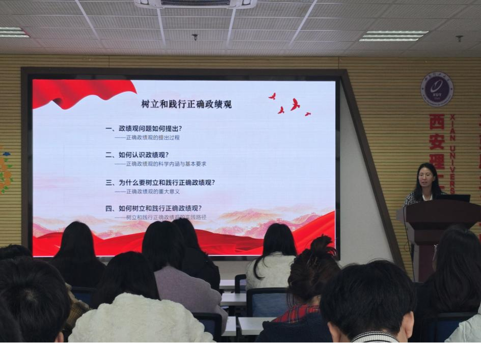 随后,她围绕四个核心问题展开系统讲解:一是梳理了正确政绩观的提出过程,明晰时代背景与发展脉络;二是阐释了正确政绩观的科学内涵与基本要求,并结合《之江新语》重要论述深化理解;三是阐明树立和践行正确政绩观的重大意义,深化了大家的思想认识;四是明确了新时代践行正确政绩观的实践路径,为青年学子指明了努力方向。