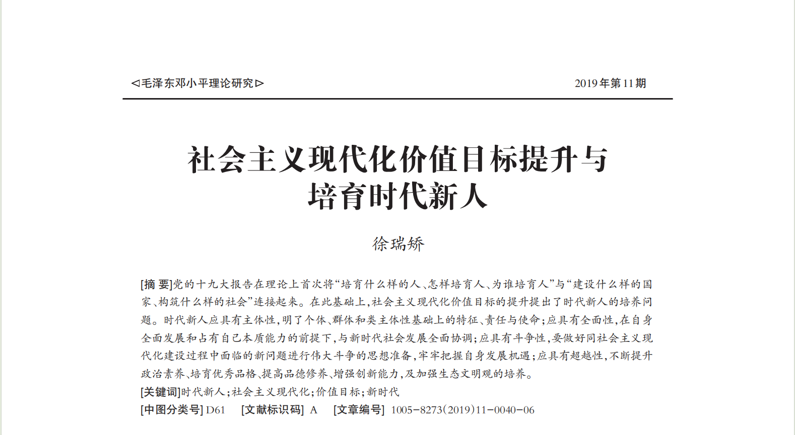 [关键词]时代新人;社会主义现代化;价值目标;新时代